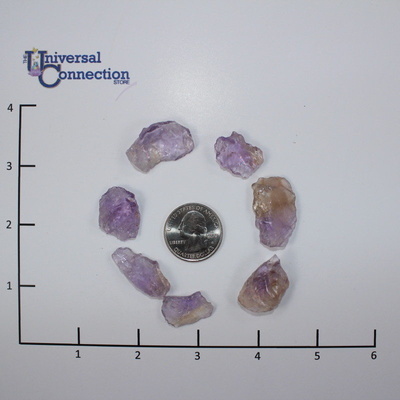 This Polished Ametrine is a natural combination of amethyst & citrine (giving way to a purlpe & yellow color), assists those with: