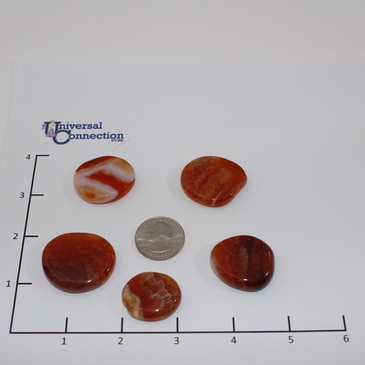 This orange & white striated Fire Agate Medallion s perfect for a pocket, wallet, or purse, and is a stone of courage, protection & strength, bringing;