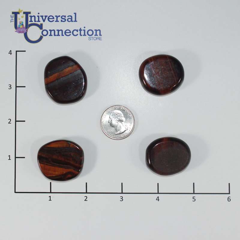Red Tiger Eye (or dragon's eye) is brownish red and has lines both light and dark running through it. Stones exhibit a subtle amount of flash. It has the same basic properties as regular tiger’s eye, and has additional traits relative to its coloring.The metaphysical properties it has include the ability to enhance these things: integrity, practicality, willpower, self care and motivation; as well it encourages you to adopt a healthy passion for any project or experience that may come about.