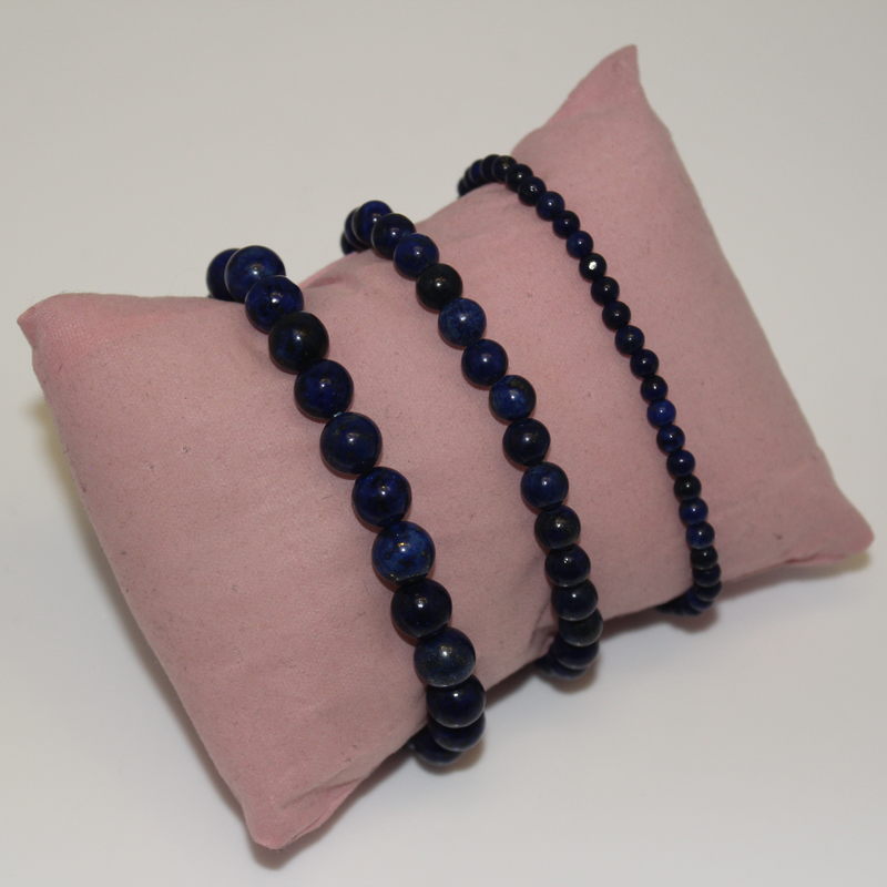 It is available in 3 sizes: 4mm, 6mm, 8mm size beading on an elastic string for ease of the wearer.