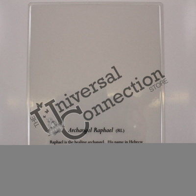 Raphael is the Archangel of Healing governing the Fifth Ray of creation corresponding to the Third Eye Chakra. In Hebrew his name means "God Cures" and he represents the qualities of truth, vision, focus and healing. Call upon Raphael for healing, rejuvenation and the ability to see the real from the unreal. 7" x 5"