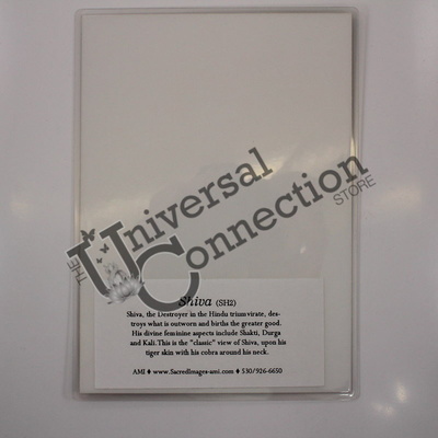 Shiva, the Destroyer in the Hindu trium virate, destroys what is outworn and births the greater good. His divine feminine aspects include Shakti, Durga and Kali. This is the "classic" view of Shiva, upon his tiger skin with his cobra around his neck. 7" x 5"