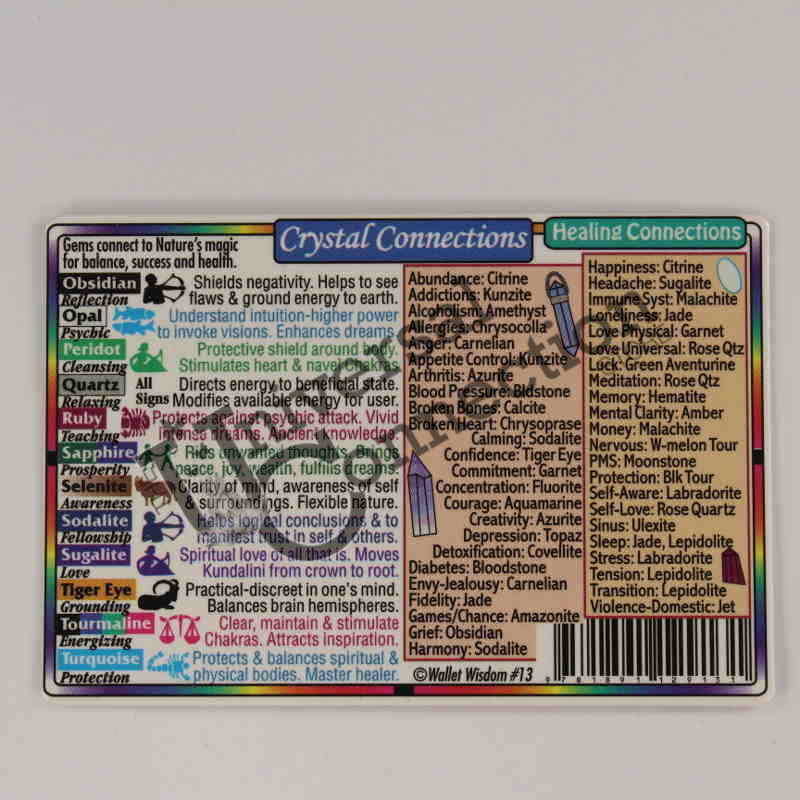 Crystals are a gift to help us ascend, heal mind, body and spirit, tap into our inner knowing, enhance our natural gifts, and more. This wallet card is a perfect quick reference guide for beginners as well as seasoned users. This also makes a great gift for friends and family. 3" x 2"