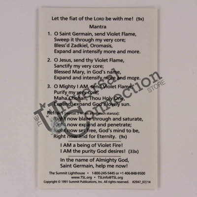 Saint Germain is the cohan of the Seventh Ray and master alchemist of the sacred fire bearing the gift of the Violet Flame. He is the heirarch of the Aquarian Age and delivers justice, mercy, alchemy and sacred ritual through the seventh ray. A new lifewave, a new civilization, a new energy. 3" x 2"