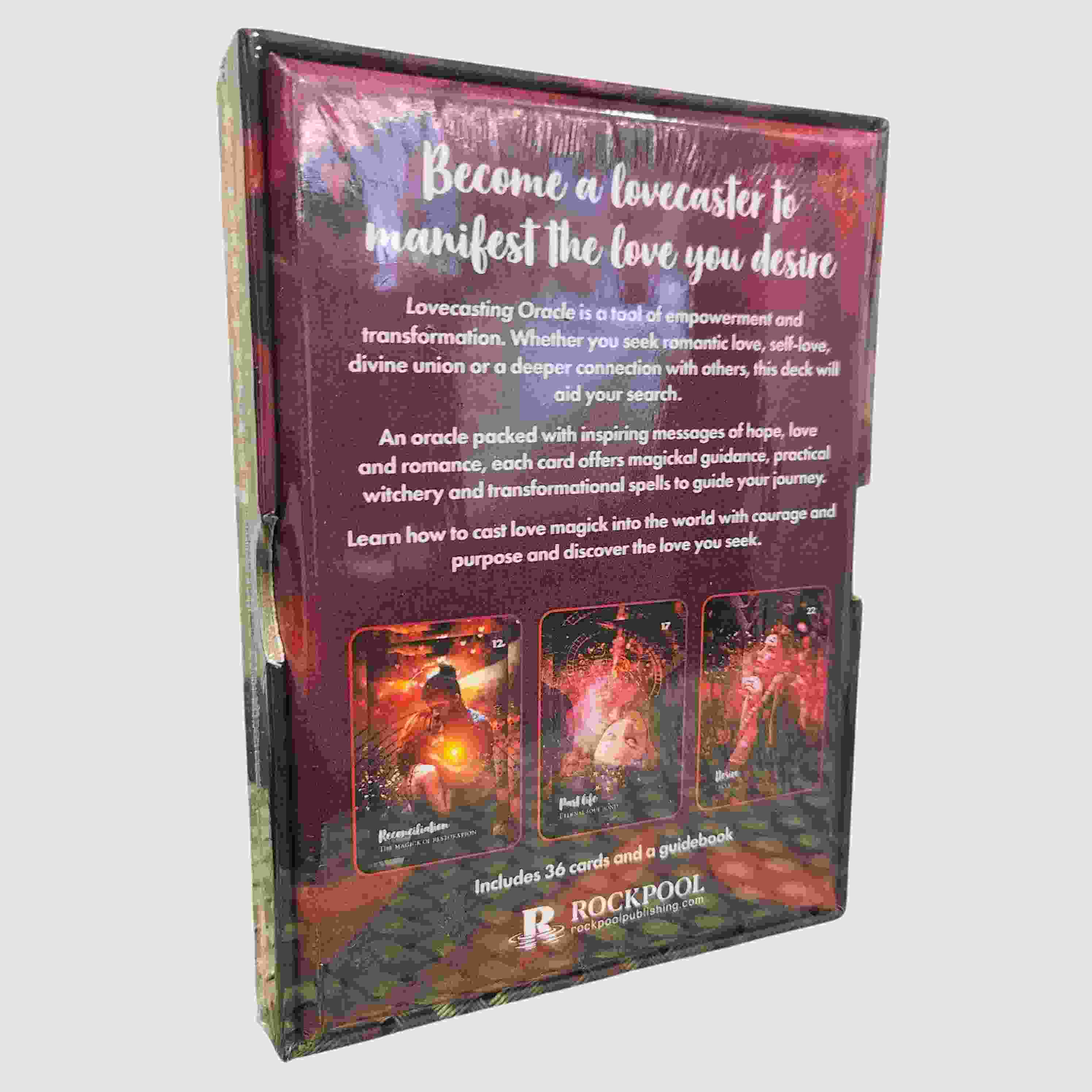The Lovecasting Oracle is a key to unlocking the ancient art of love.It is a tool of empowerment and transformation. As you draw each card, you awaken the love caster within who dares to summon their desires, spin the web of their fate and cast love magick into the world with courage and purpose. Each card offers magickal guidance, practical witchery and transformational spells to guide your journey. Whether calling in a soulmate, nurturing a romance, deepening friendships or reigniting love within yourself, true love begins within. It is the ultimate connection to your divine self and the Creator, the source of all love. This deck is your guide to discovering and using that sacred connection to manifest the love you seek. Packed with inspiring message of hope, love and romance, there is also the witchery of charms, spells and incantations to help you take magical action to draw in your true desire and the love you want. Become a love caster to determine your love life and your love for life!