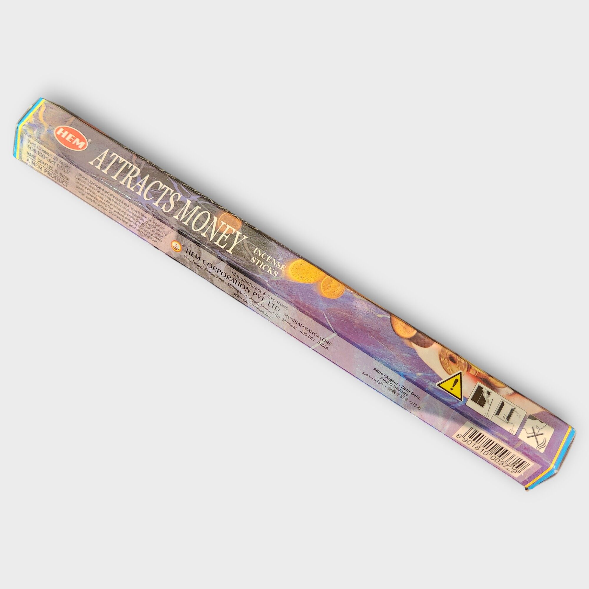 This incense is made in India, hand rolled from the finest ingredients. Each box has 20 sticks.