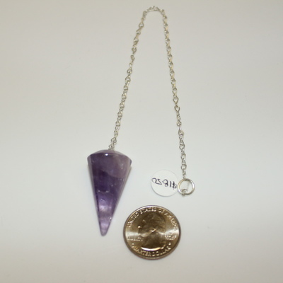 Pendulums are often used for divination, spiritual healing and inner growth. This hexagonal shaped Amethyst pendulum is often worn by healers, as it has the power to focus energy. Allow for slight variation in color, charm and size. Chain 8.75in Crystal 1.25 x .75