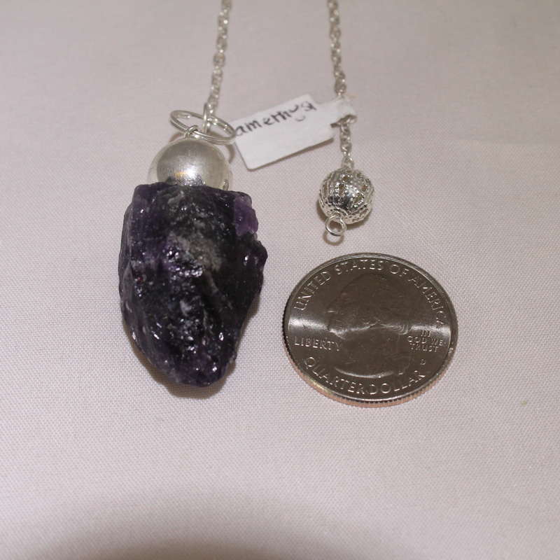 Pendulums are often used for divination, spiritual healing and inner growth. NAmethyst pendulum, with a charm at its top, and are the are the supreme gift of Mother Earth bringing in harmony, healing and protections. Allow for slight variation in color, charm and size. Chain 7in Crystal 1.25 x .75