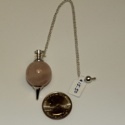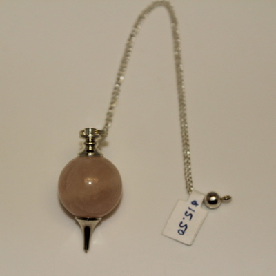 Pendulums are often used for divination, spiritual healing and inner growth. This round shaped Rose Quartz pendulum, with a silver bead at its top, both calms & heals the heart while attracting & keeping love. Allow for slight variation in color, charm and size. Chain 7in Crystal 1 x 1