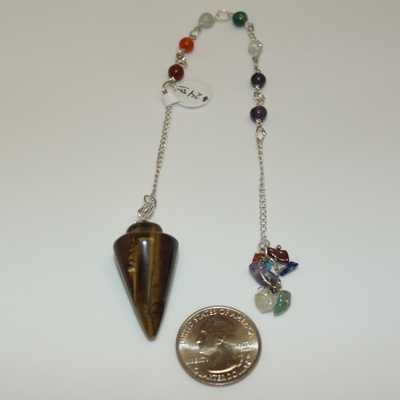 Tiger Eye (smooth) Pendulum with Chakra Stone Charm