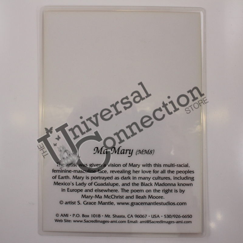 Ma Mary reveals her love for all the peoples of Earth. Mary is portrayed as dark in many cultures, including Mexico's Lady of Guadalupe, and the Black Madonna known in Europe and elsewhere. 7" x 5"