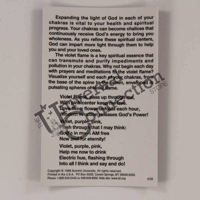 Expanding in the light of God in each of your chakras is vital to your health and spiritual progress. Your chakras can become chalices that continuously receive God's energy to bring up your wholeness. Use this card to cleanse your chakras with the violet flame and embody the essence of your I AM. 3" x 2"