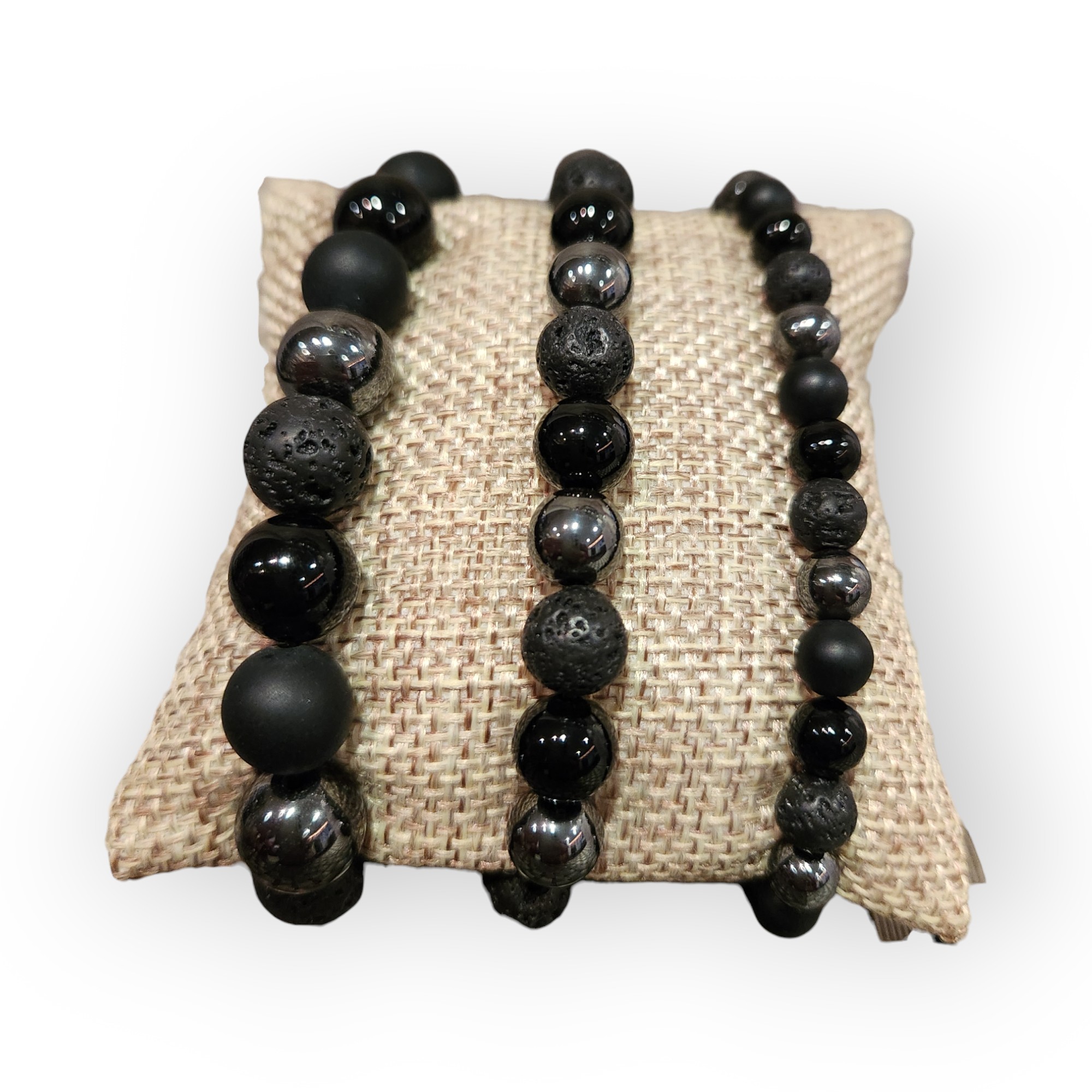 It is available in 3 sizes: 4mm, 6mm, 8mm size beading on an elastic string.