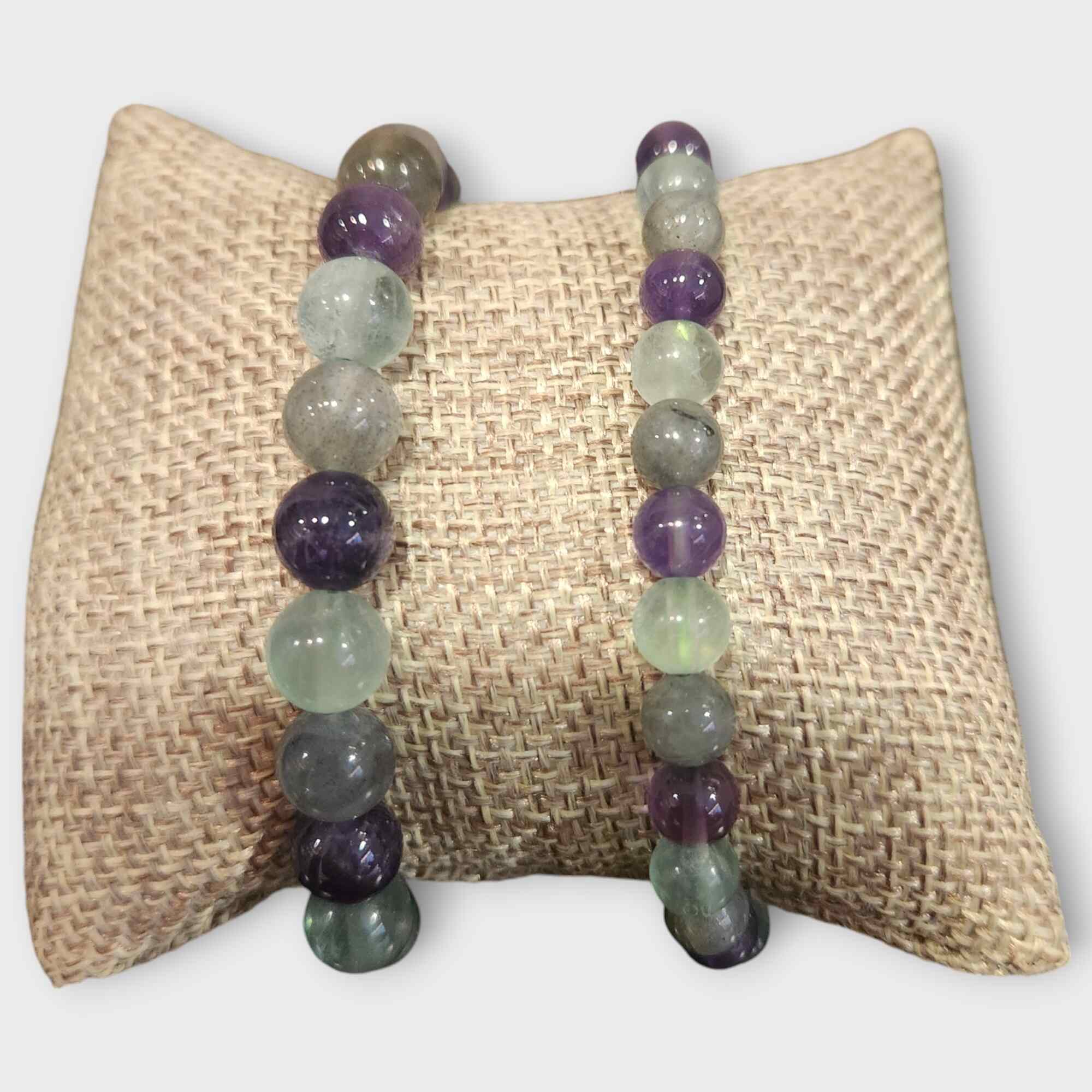It is available in 3 sizes: 4mm, 6mm, 8mm size beading on an elastic string for ease of the wearer.