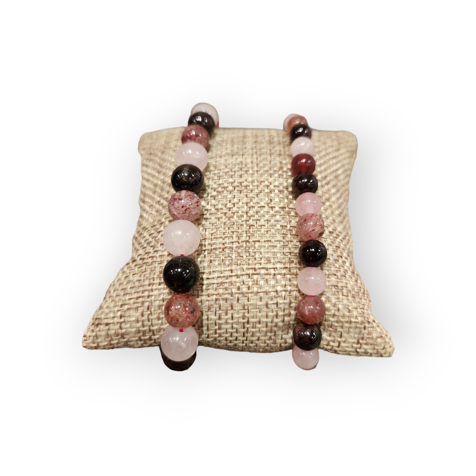 It is available in 3 sizes: 4mm, 6mm, 8mm size beading on an elastic string for ease of the wearer.